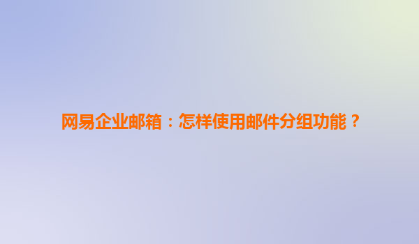 2025-07-02網易企業郵箱:高效郵件分組功能助力企業溝通 一、網易企業郵箱的競爭優勢 在數字化辦公時代,高效的郵件管理是企業運營的剛需。網易企業郵箱憑借其穩定安全的服務體系和智能化功能,成...
