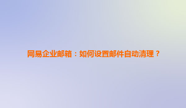 2025-07-02網易企業郵箱:如何設置郵件自動清理? 一、為什么要設置郵件自動清理? 在日常工作中,企業郵箱會積累大量郵件,包括已讀郵件、過期通知、臨時文件等。長期不清理會導致以下問題: ...