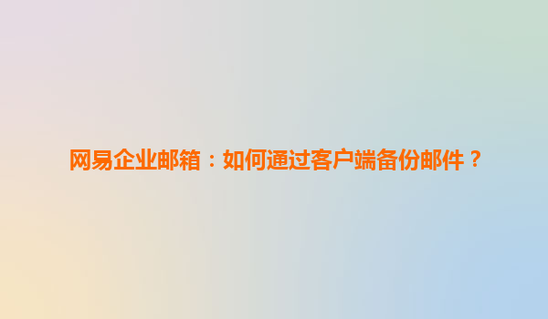 2025-07-02網易企業郵箱客戶端備份郵件的詳細指南 網易企業郵箱作為國內領先的企業級郵件服務提供商,不僅擁有穩定高效的郵件收發功能,還提供了便捷的郵件備份服務。通過客戶端備份郵件,可以有效防止數據丟失,保障企業通信...