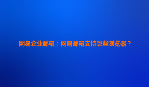 網易企業郵箱:兼容性與瀏覽器支持全解析 一、網易企業郵箱支持的瀏覽器 網易企業郵箱作為國內領先的企業級郵件服務,致力于提供穩定、高效的辦公體驗。為確保...
