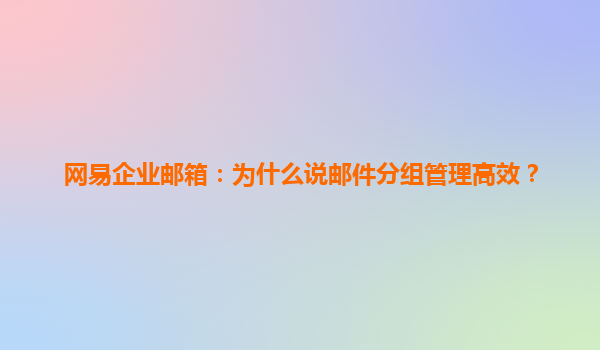 2025-07-01網易企業郵箱:為什么說郵件分組管理高效? 在現代企業中,高效的郵件管理是提升工作效率的關鍵。網易企業郵箱憑借其強大的郵件分組管理功能,成為眾多企業的首選。本文將詳細解析網易企業郵箱的分組...