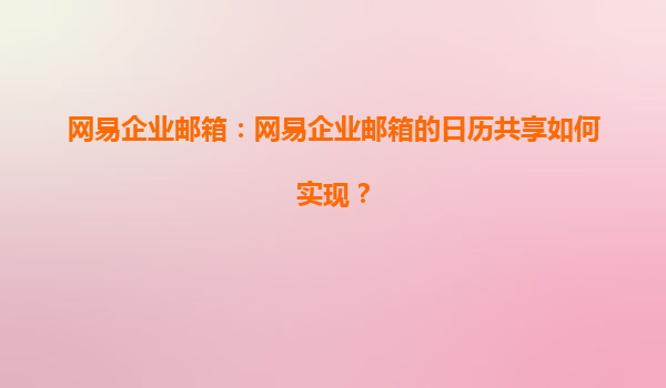 網易企業郵箱:高效協同的日歷共享功能詳解 一、網易企業郵箱日歷共享功能概述 網易企業郵箱作為國內領先的企業級郵箱服務提供商,其內置的日歷共享功能是企業高效協同辦公的重要工具。通過該功能,團隊成...