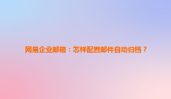 2025-07-01網易企業郵箱郵件自動歸檔功能簡介 網易企業郵箱作為國內領先的企業級郵件服務提供商,其郵件自動歸檔功能為企業用戶提供了高效便捷的郵件管理解決方案。通過智能化的歸檔機制,用戶可以輕松實現郵件的分類存儲和快...