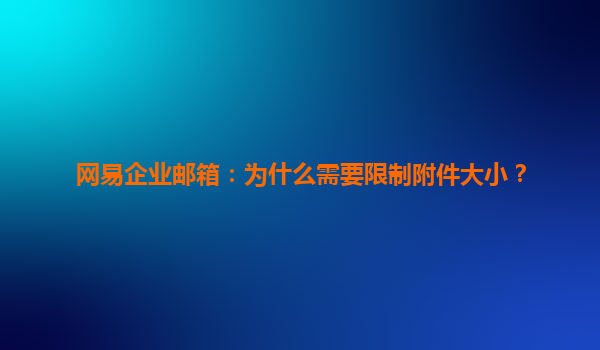 2025-07-01為什么需要限制附件大小? 在日常工作中,企業郵箱作為溝通的重要工具,附件傳輸是不可或缺的功能。然而,附件大小的限制并非隨意設置,而是基于多方面的考量。限制附件大小可以提升郵箱系統的穩定性,避免因超大附...