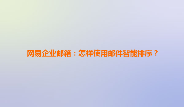 網易企業郵箱:怎樣使用郵件智能排序? 一、網易企業郵箱簡介 網易企業郵箱是國內領先的企業級電子郵件服務提供商,憑借其穩定、安全、高效的特性,深受廣大企業用戶的信賴。網易企業郵箱不僅提供基礎的郵...