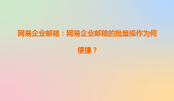 2025-07-01網易企業郵箱:網易企業郵箱的批量操作為何便捷? 在現代企業管理中,高效的溝通工具是提升工作效率的關鍵。網易企業郵箱作為國內領先的企業郵箱服務提供商,憑借其強大的功能和便捷的操作體驗,贏得...