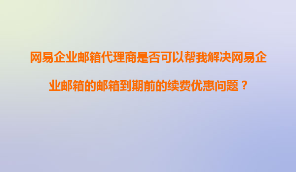 2025-11-05網(wǎng)易企業(yè)郵箱代理商:您的郵箱續(xù)費優(yōu)惠問題解決專家 隨著企業(yè)信息化建設的不斷深入,企業(yè)郵箱已經(jīng)成為現(xiàn)代企業(yè)不可或缺的通信工具。網(wǎng)易企業(yè)郵箱憑借其穩(wěn)定、安全、高效的服務,贏得了眾多企業(yè)的青睞。然而,很多企...