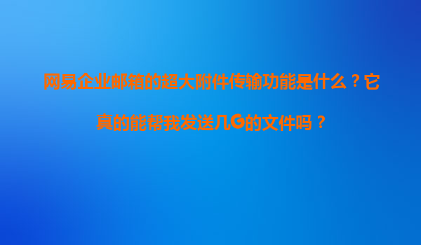 2025-11-05網(wǎng)易企業(yè)郵箱的超大附件傳輸功能詳解:輕松發(fā)送幾G大文件 一、什么是網(wǎng)易企業(yè)郵箱的超大附件傳輸功能? 網(wǎng)易企業(yè)郵箱的超大附件傳輸功能是一項針對企業(yè)用戶設計的高效文件傳輸服務,旨在解決傳統(tǒng)...