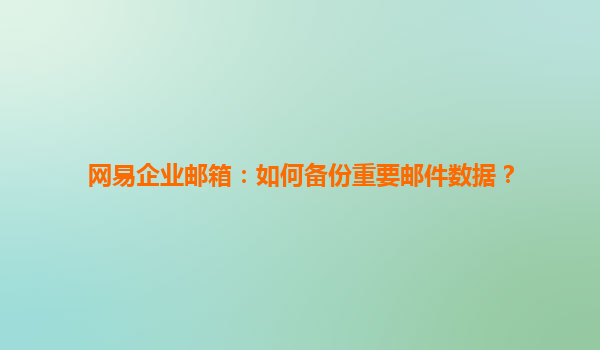2025-06-30網易企業郵箱:如何備份重要郵件數據? 一、網易企業郵箱的核心優勢 在數字化辦公時代,企業郵箱不僅是溝通工具,更是數據資產的重要載體。網易企業郵箱憑借以下優勢,成為眾多企業...