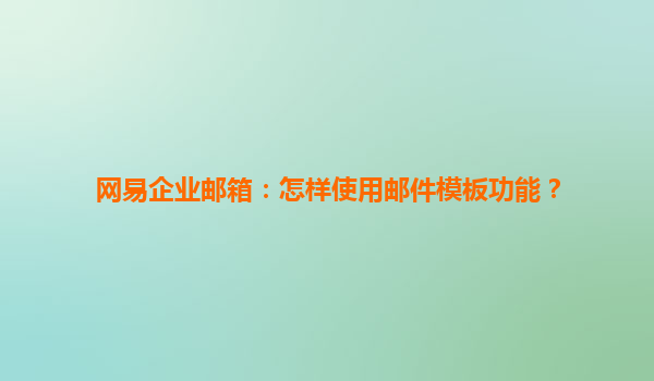 2025-06-30網易企業郵箱:郵件模板功能使用指南 一、網易企業郵箱的優勢 網易企業郵箱作為國內領先的企業級郵箱服務提供商,憑借以下優勢深受企業用戶青睞: 穩定高效:采用分布式架構,保障99.9%的服務可用性。 ...