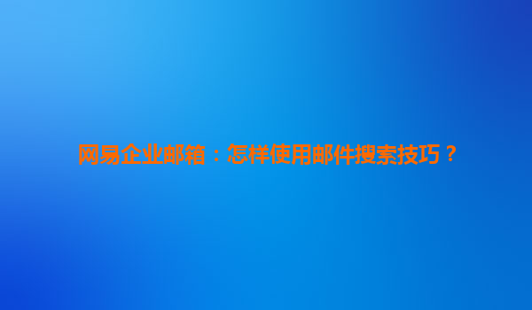 高效辦公必備:網易企業郵箱郵件搜索技巧全解析 一、精準搜索:快速定位目標郵件 網易企業郵箱提供強大的關鍵詞搜索功能,支持通過發件人、收件人、主題、正文等字段組合篩選。例如輸入"from:張三項目進度...