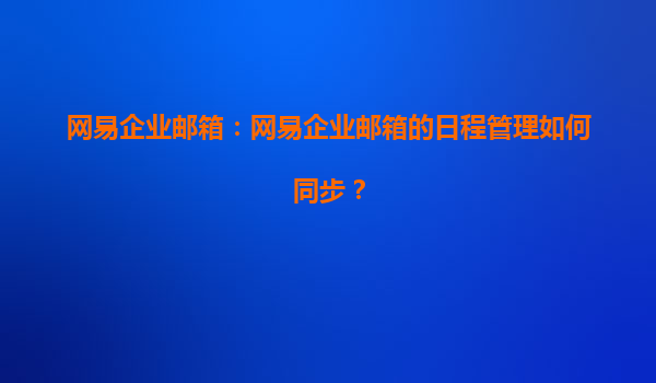 2025-06-30網易企業郵箱:網易企業郵箱的日程管理如何同步? 一、網易企業郵箱日程管理的核心優勢 在企業數字化轉型的浪潮中,高效的日程管理成為提升團隊協作效率的關鍵。網易企業郵箱憑借其強大的日程...