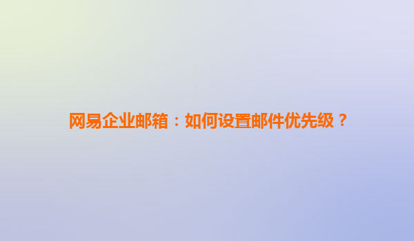 2025-06-30網易企業郵箱:如何設置郵件優先級? 在現代職場中,高效的郵件管理是提升工作效率的關鍵。網易企業郵箱作為國內領先的企業級郵箱服務,不僅提供了穩定可靠的郵件收發功能,還支持郵件優先級的靈活設置,幫助用戶快...