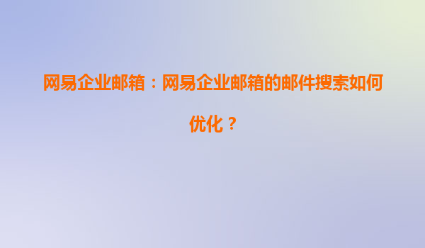 2025-06-29網易企業郵箱郵件搜索優化全攻略:釋放高效協作潛能 一、郵件搜索——企業效率的關鍵戰場 在日均處理數百封郵件的現代辦公場景中,郵件搜索效率直接影響企業決策速度。網易企業郵箱作為...