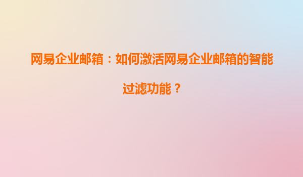 2025-06-30網易企業郵箱:如何激活智能過濾功能及核心優勢解析 一、標題深度解析:智能過濾功能的核心價值 標題"如何激活網易企業郵箱的智能過濾功能?"包含三層關鍵信息: 1.操作導向-...