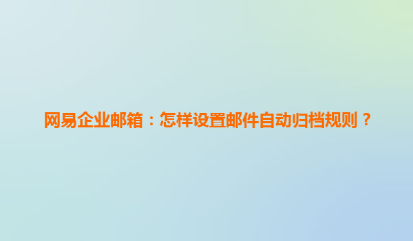 2025-06-29網易企業郵箱:郵件自動歸檔規則設置詳解 一、郵件自動歸檔的核心價值 郵件自動歸檔是網易企業郵箱的智能化管理功能,通過預設規則自動將特定郵件分類存儲到指定文件夾。它能實現: 高效組織:自動分...