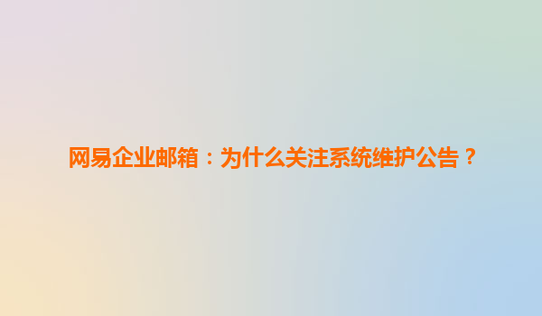 2025-06-29網易企業郵箱:為什么系統維護公告值得您的特別關注? 在數字化辦公時代,企業郵箱如同組織的"數字中樞神經",任何細微波動都可能影響整個業務流程。網易企業郵箱定期發布的系統維護公告看似是...