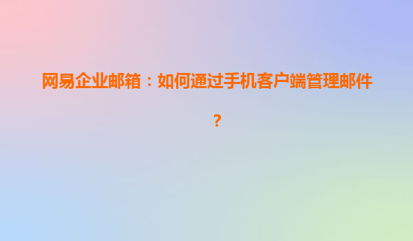 2025-06-30以下是根據您要求撰寫的關于網易企業郵箱手機客戶端管理的文章,采用HTML格式輸出: 網易企業郵箱:移動辦公時代的郵件管理利器 移動辦公新趨勢 在快節奏的現代商業環境中,隨時處理工作郵件已成為職場...