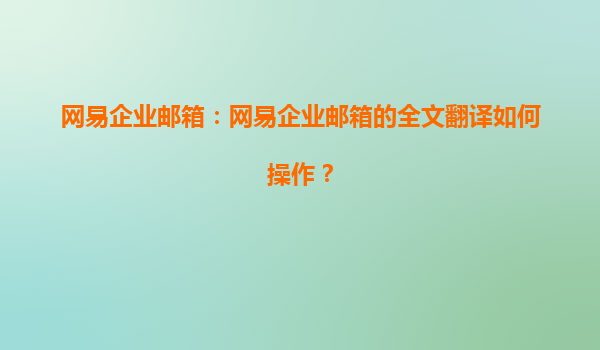 2025-06-29網易企業郵箱全文翻譯功能操作指南與優勢解析 一、全文翻譯功能操作詳解 步驟1:開啟翻譯功能 登錄網易企業郵箱Web端→右上角"設置"→選擇"郵箱設置"→在"基礎設置"中找到"郵件...