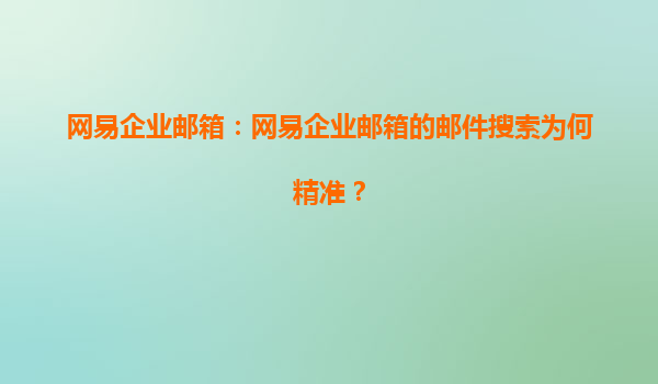 2025-06-29網易企業郵箱:揭秘郵件搜索為何如此精準高效 企業通信的核心痛點 在當今快節奏的商業環境中,企業郵箱每天承載著海量信息交互。據統計,職場人士平均每天處理超過120封郵件,如何從堆積...