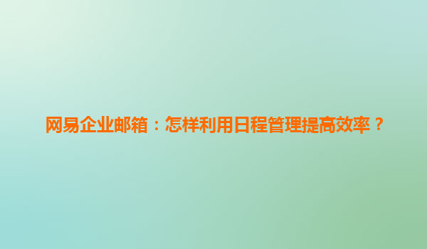 2025-06-28網易企業郵箱:巧用日程管理,提升團隊效率新引擎 一、日程管理的核心價值 在快節奏的商業環境中,時間管理能力直接決定團隊生產力。網易企業郵箱的日程管理功能,將郵件溝通與時間規劃...