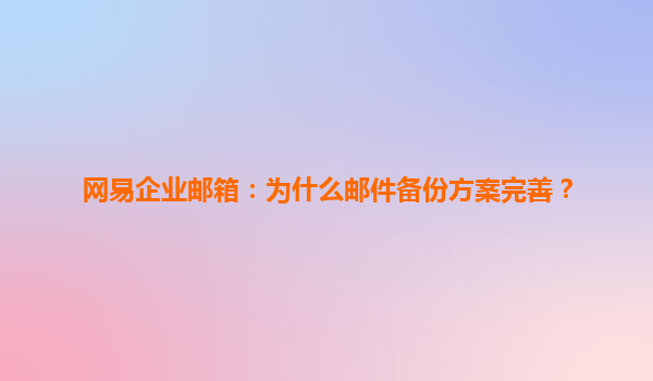 網易企業郵箱:為什么郵件備份方案完善? 在數字化辦公時代,企業郵件承載著大量商業機密與歷史數據。一次誤刪除、系統故障或安全事件,都可能造成無法挽回的損失。網易企業郵箱憑借其行業領先...