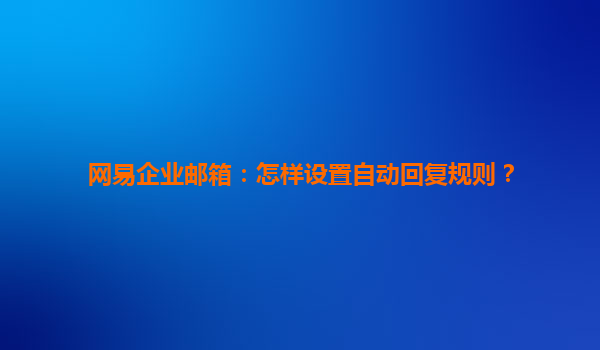 2025-06-28高效溝通新體驗:網易企業郵箱自動回復功能詳解 智能辦公的必備利器 在商務往來日益頻繁的數字化時代,及時響應成為專業形象的重要體現。網易企業郵箱的自動回復功能,正是為解決這一需求而生的智能工具。當您...