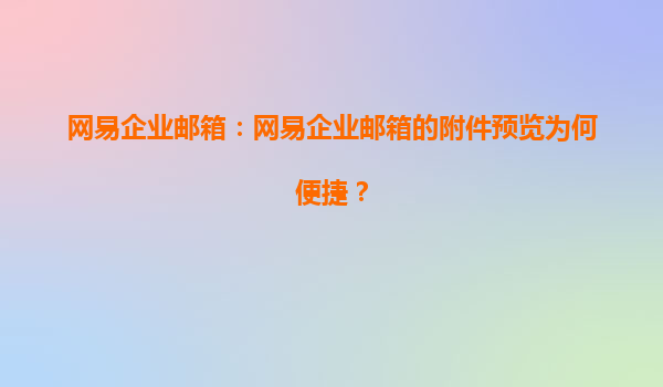 2025-06-28網易企業郵箱:附件預覽為何如此便捷?揭秘高效辦公的"隱形引擎" 在快節奏的現代辦公場景中,一封郵件攜帶多個附件已成為常態。傳統郵箱需要反復下載才能查看內容,而網易企業郵箱的附件預覽功能如同為...
