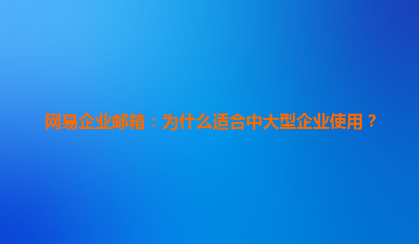 以下是以HTML格式呈現的關于網易企業郵箱適合中大型企業的分析文章: 網易企業郵箱:中大型企業高效協同與安全管理的理想之選 一、企業級安全防護體系 中大型企業面臨復雜的數據安全挑戰,網易企...