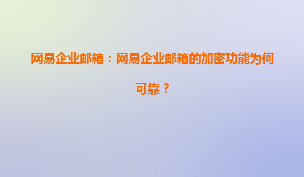 2025-06-28網易企業郵箱:為何其加密功能成為企業通信的可靠之盾? 在數字化轉型浪潮中,企業郵箱不僅是溝通工具,更是商業機密的第一道防線。網易企業郵箱憑借軍工級加密體系,構建起讓百萬企業信賴的安...
