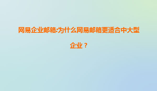 2025-06-25網易企業郵箱:中大型企業高效協作與安全管理的智慧之選 一、中大型企業的郵箱核心訴求 在數字化辦公時代,中大型企業面臨郵箱系統的三重挑戰:海量用戶管理復雜度高(千人以上組織架構...