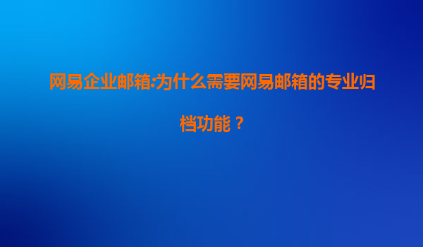 2025-06-25網易企業郵箱:專業歸檔功能,企業數據管理的智慧之選 一、引言:數字化時代的郵件管理挑戰 在當今商業環境中,企業郵件承載著70%以上的核心業務信息。隨著數據量爆發式增長,郵件管理面臨三大痛點:合規風...