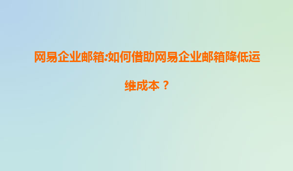 2025-06-25網易企業郵箱:智能運維解決方案助力企業降本增效 一、運維成本:企業數字化轉型的隱形負擔 在數字化辦公時代,企業郵箱作為核心通信工具,傳統自建郵箱系統面臨服務器維護、安全防護、...