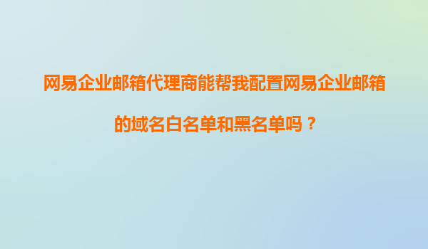 2025-11-19網(wǎng)易企業(yè)郵箱代理商能幫我配置網(wǎng)易企業(yè)郵箱的域名白名單和黑名單嗎? 隨著企業(yè)信息化建設(shè)的不斷深入,企業(yè)郵箱已成為企業(yè)日常辦公不可或缺的一部分。網(wǎng)易企業(yè)郵箱以其強(qiáng)大的功能、穩(wěn)定的性能和優(yōu)質(zhì)的售后服務(wù)贏...
