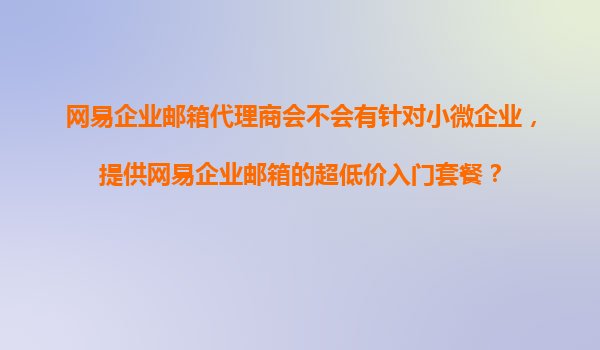 2025-11-19網(wǎng)易企業(yè)郵箱代理商是否會為小微企業(yè)提供超低價(jià)入門套餐? 1.網(wǎng)易企業(yè)郵箱的市場定位與代理商體系 網(wǎng)易企業(yè)郵箱是國內(nèi)領(lǐng)先的企業(yè)級郵件服務(wù)提供商,憑借其穩(wěn)定、安全、高效的特點(diǎn),深受廣大企業(yè)...