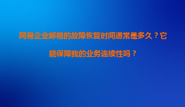 2025-11-19網(wǎng)易企業(yè)郵箱的故障恢復(fù)時(shí)間通常是多久?它能保障我的業(yè)務(wù)連續(xù)性嗎? 一、網(wǎng)易企業(yè)郵箱的技術(shù)優(yōu)勢與故障恢復(fù)能力 作為國內(nèi)領(lǐng)先的企業(yè)郵箱服務(wù)提供商,網(wǎng)易企業(yè)郵箱憑借其強(qiáng)大的技術(shù)實(shí)力和穩(wěn)定的服務(wù)架...