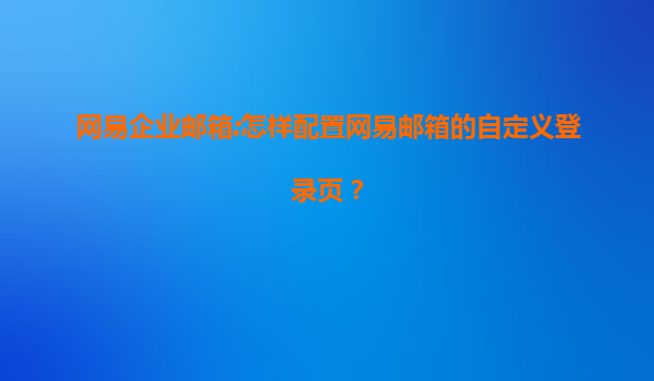 網易企業郵箱:怎樣配置網易郵箱的自定義登錄頁?