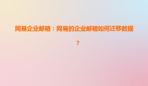網易企業郵箱:網易的企業郵箱如何遷移數據?
