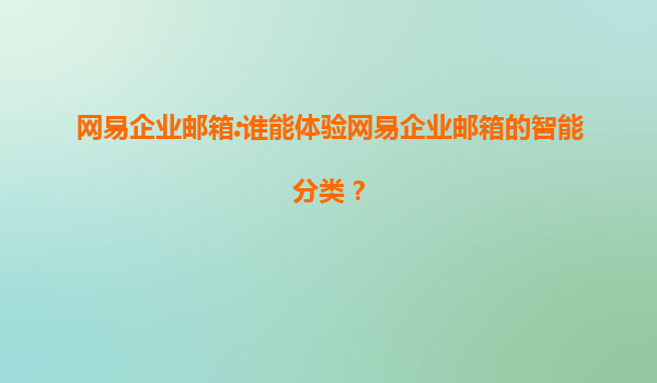 網(wǎng)易企業(yè)郵箱:誰能體驗(yàn)網(wǎng)易企業(yè)郵箱的智能分類?