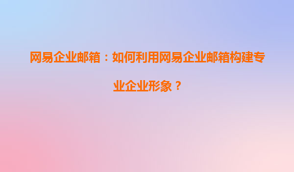網易企業郵箱:打造專業企業形象的得力助手
