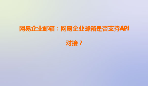 一、網易企業郵箱是否支持API對接?