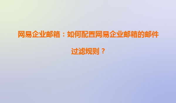 網(wǎng)易企業(yè)郵箱:如何配置郵件過(guò)濾規(guī)則