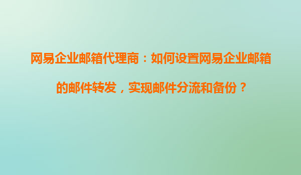 網(wǎng)易企業(yè)郵箱代理商:如何設(shè)置網(wǎng)易企業(yè)郵箱的郵件轉(zhuǎn)發(fā),實(shí)現(xiàn)郵件分流和備份?