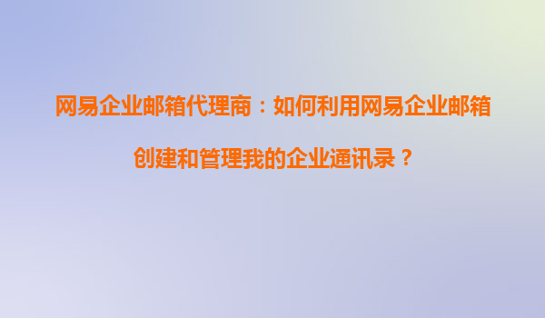 網(wǎng)易企業(yè)郵箱代理商:如何高效創(chuàng)建與管理企業(yè)通訊錄