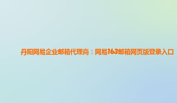 丹陽網(wǎng)易企業(yè)郵箱代理商:網(wǎng)易163郵箱網(wǎng)頁版登錄入口