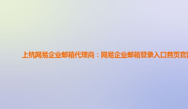網(wǎng)易企業(yè)郵箱代理商:網(wǎng)易企業(yè)郵箱登錄入口首頁官網(wǎng)