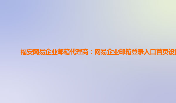 福安網(wǎng)易企業(yè)郵箱代理商:網(wǎng)易企業(yè)郵箱登錄入口首頁設(shè)置