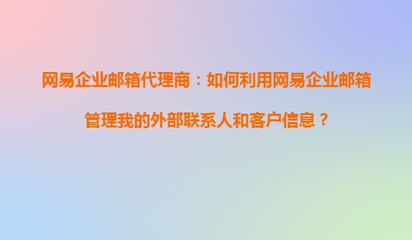 4008-020-360 網(wǎng)易企業(yè)郵箱代理商:如何利用網(wǎng)易企業(yè)郵箱管理我的外部聯(lián)系人和客戶信息? 一、引言 在現(xiàn)代企業(yè)運(yùn)營(yíng)中,客戶關(guān)系管理(CRM)是提升業(yè)務(wù)效率和客戶滿意度的核心環(huán)節(jié)。而作為企業(yè)通信的重...