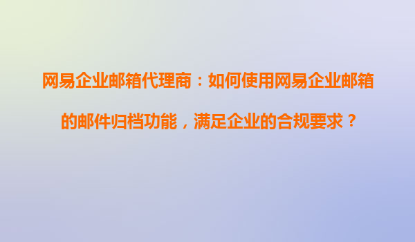 2025-11-01網(wǎng)易企業(yè)郵箱代理商:如何使用網(wǎng)易企業(yè)郵箱的郵件歸檔功能,滿足企業(yè)的合規(guī)要求 一、郵件歸檔功能的重要性 在數(shù)字化辦公日益普及的今天,企業(yè)郵件不僅是日常溝通的工具,更是重要的...