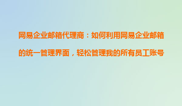 2025-11-01網(wǎng)易企業(yè)郵箱代理商:如何利用網(wǎng)易企業(yè)郵箱的統(tǒng)一管理界面,輕松管理我的所有員工賬號(hào)? 作為現(xiàn)代企業(yè)管理的重要工具,企業(yè)郵箱的高效管理直接影響團(tuán)隊(duì)協(xié)作與信息安全。網(wǎng)易企業(yè)郵箱憑借其強(qiáng)大的統(tǒng)一管理界...